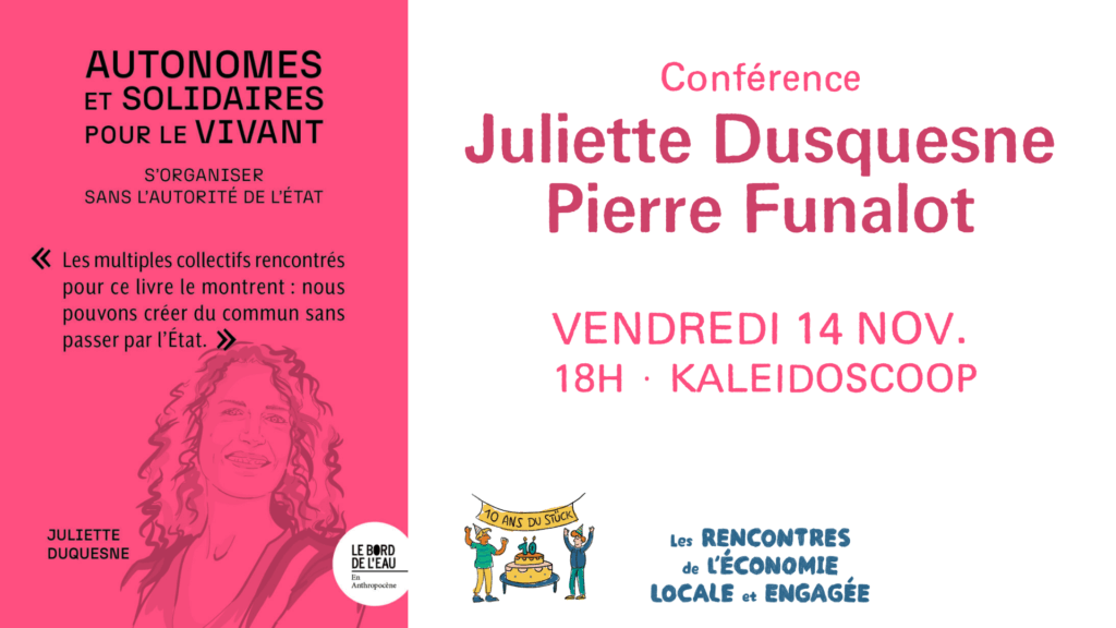 - 18h00 ⚔️ Conférence « S’organiser sans l’autorité de l’État ? » avec Juliette Duquesne et Pierre Funalot